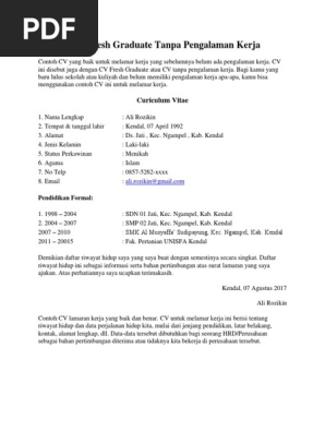Tanpa Pengalaman Kerja Contoh Cv Fresh Graduate Smk